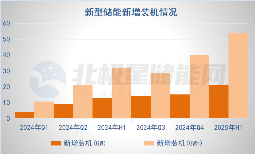 根據(jù)國家能源局歷次披露數(shù)據(jù),2025年上半年我國新型儲能新增裝機約21GW/54GWh,相較于去年同期的13GW/32GWh同比增長超62%。