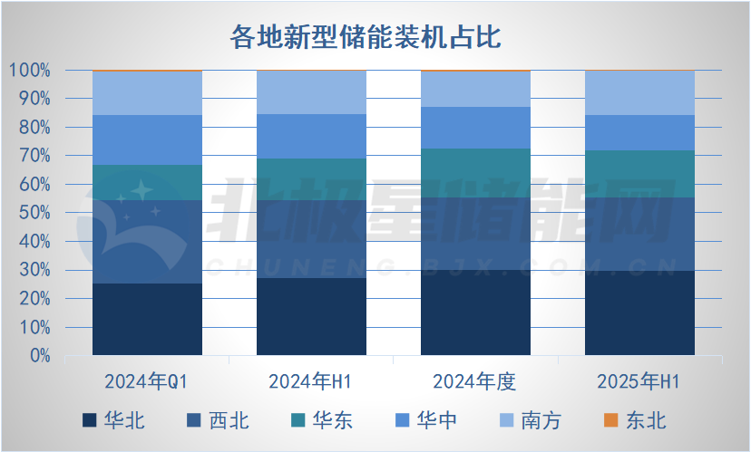 另外值得注意的是,從最新數(shù)據(jù)來看,南方地區(qū)增速較快,已投運新型儲能裝機占全國15.4%,已經(jīng)從2024年底的全國第四位提升至第三位。