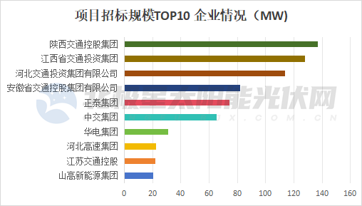 在2025年招標(biāo)市場中,陜西省交通控股集團(tuán)、江西省交通投資集團(tuán)、河北交通投資集團(tuán)有限公司是主力軍,招標(biāo)規(guī)模均超113MW;安徽省交通控股集團(tuán)有限公司、正泰集團(tuán)、中交集團(tuán)的招標(biāo)規(guī)模也不容小覷,均突破65MW。