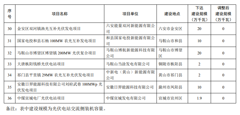 根據(jù)《安徽省能源局關(guān)于印發(fā)2021年風(fēng)電、光伏發(fā)電開發(fā)建設(shè)方案的通知》(皖能源新能〔2021〕61號)、《安徽省能源局關(guān)于對納入2021年建設(shè)規(guī)模光伏發(fā)電項目實施分類處理的通知》(皖能源新能函〔2023〕51號)等文件要求,結(jié)合項目梳理情況及市縣發(fā)展改革委意見,擬調(diào)整受水利、用地政策調(diào)整等原因的項目建設(shè)規(guī)模,現(xiàn)予公示,公示時間自發(fā)布之日起5個工作日。如有意見和建議,請在公示期內(nèi)以來人或署名來信(包括電子信函)方式向省能源局反映,對匿名方式提出異議的不予受理。