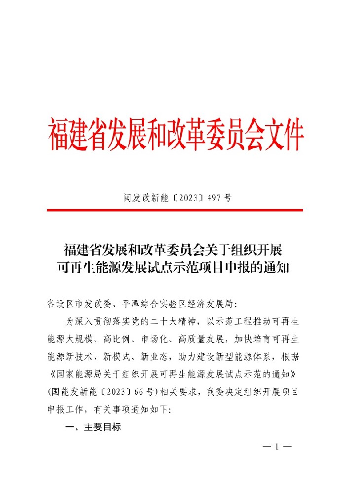 日前,福建省發(fā)展和改革委員會關于組織開展可再生能源發(fā)展試點示范項目申報的通知。